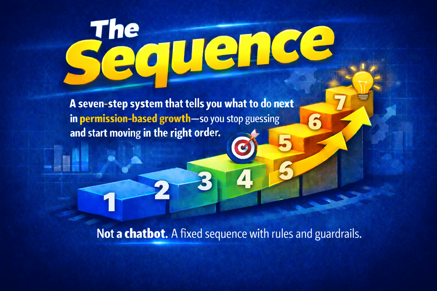 A seven-step guardrail system for permission-based growth—so you always know what to do next.